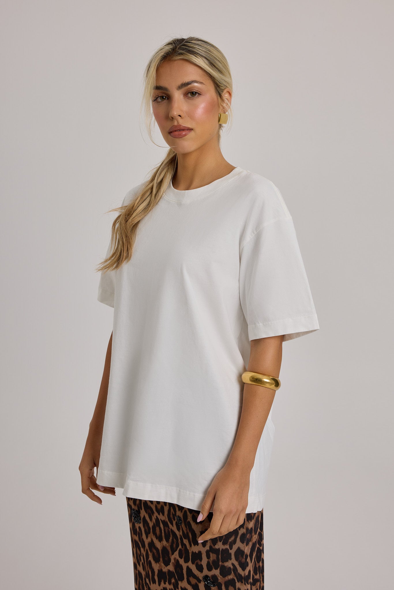 • Oversized T-shirt made from cotton. Round neck and short sleeves.