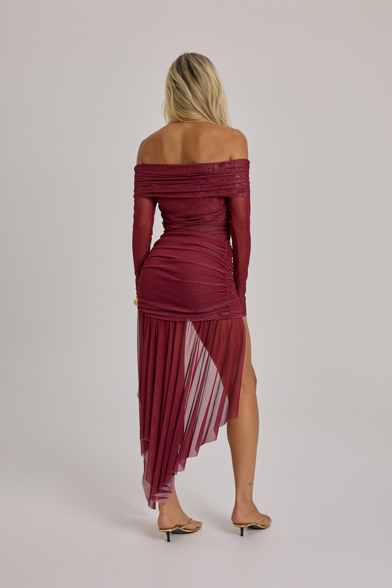 • Asymmetrical Fitted Skirt with Ruching, Featuring a Mini Skirt Base and Long Sheer Flowing Sides with Crystal Details