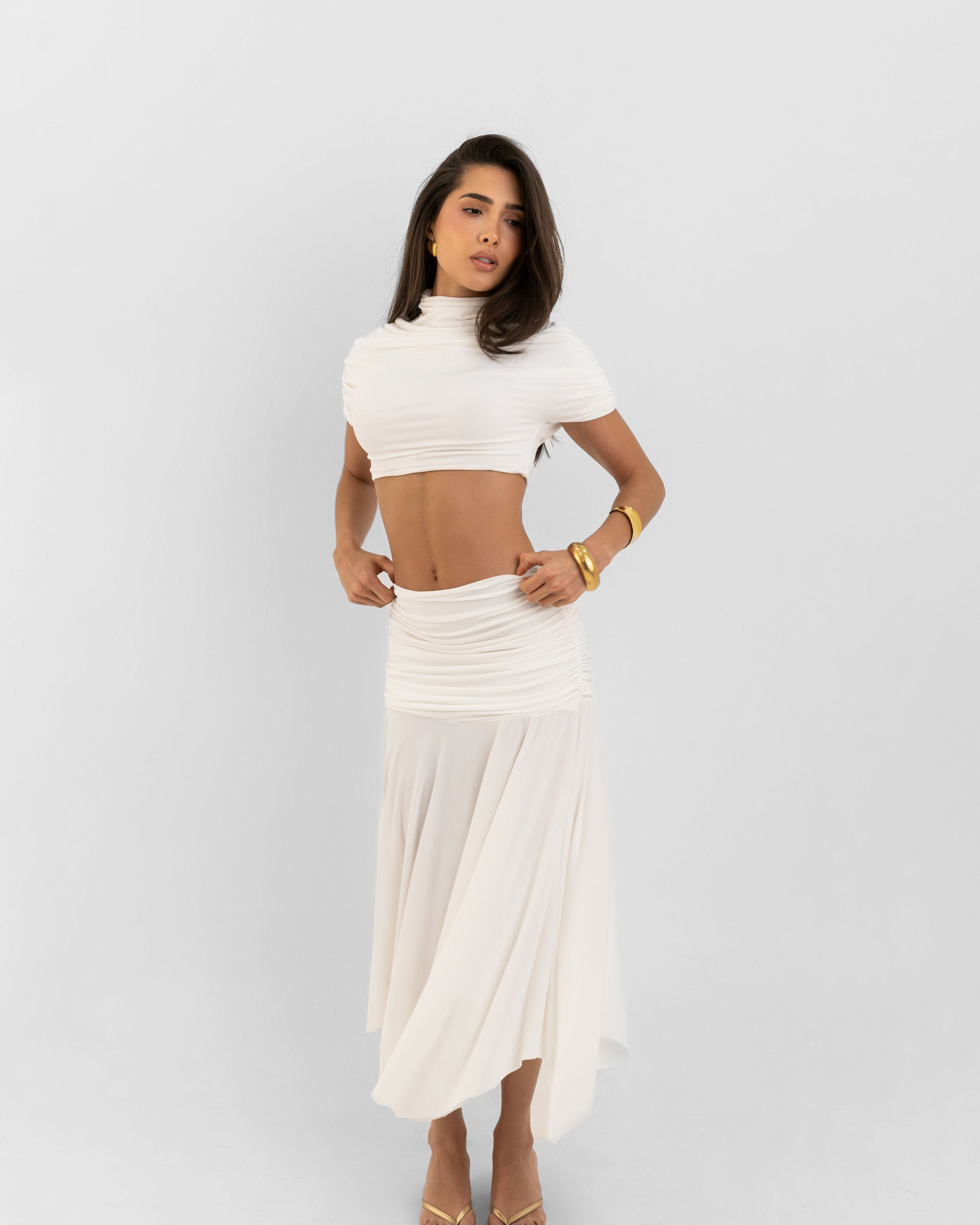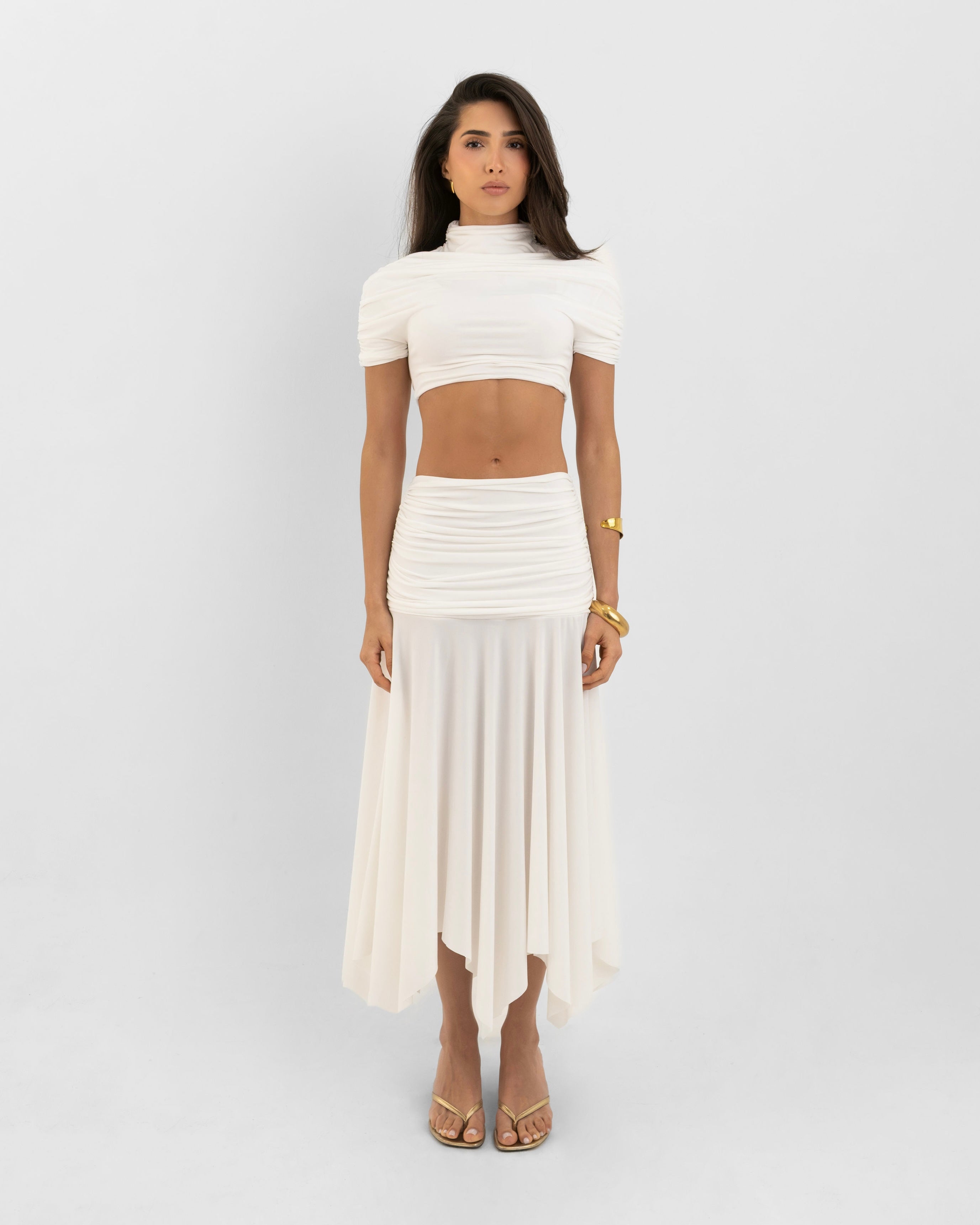 • Lightweight, fluid fabric that enhances the natural drape of the garment.